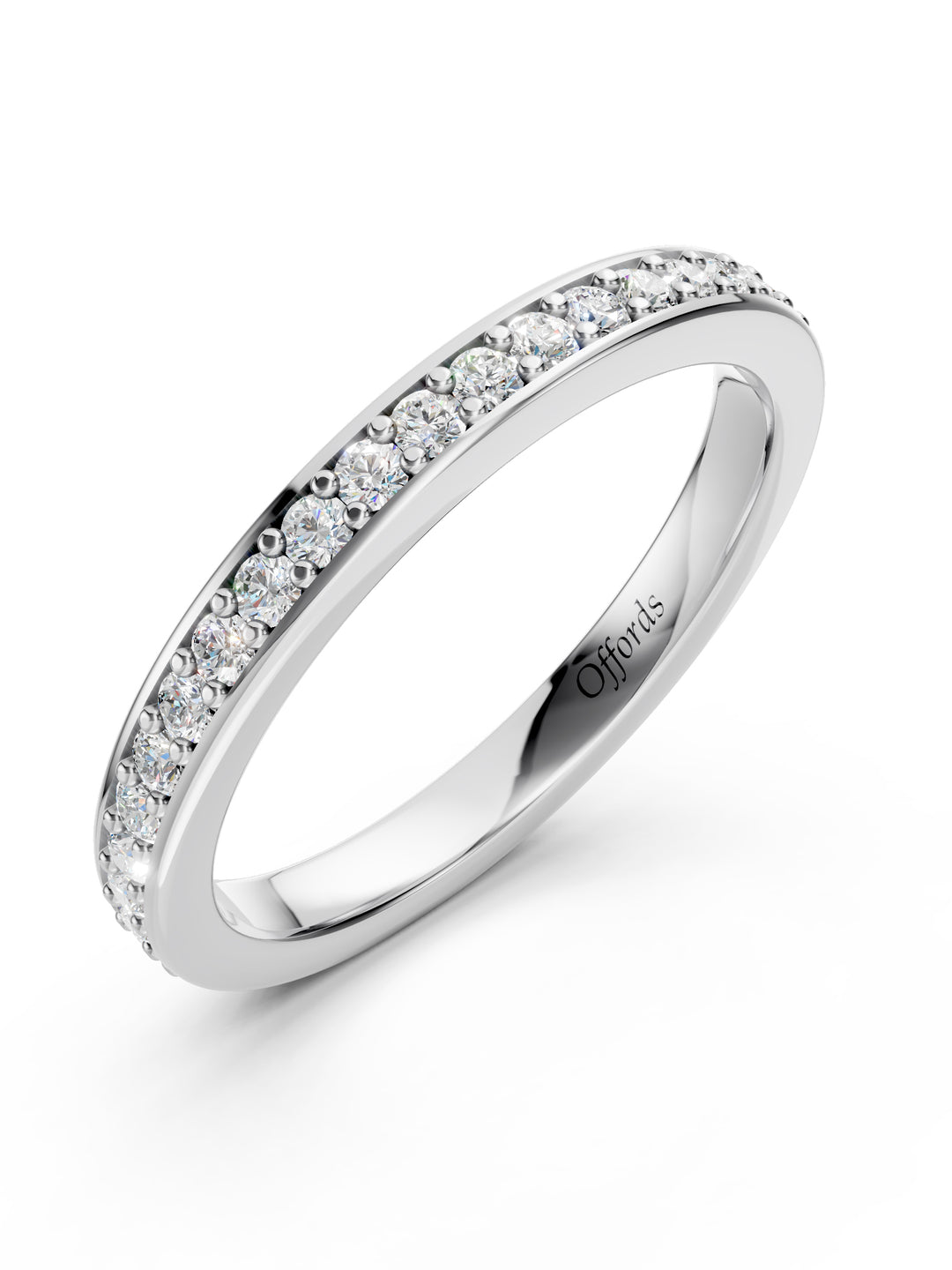 Platinum 3mm wedding band fully diamond set.
