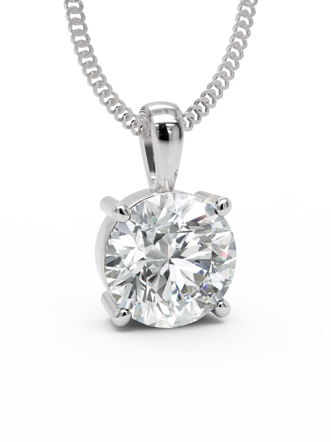 Platinum 4-claw set 2ct brilliant cut laboratory grown diamond solitaire pendant. IGI report - Colour 'D', clarity 'VS1'. Suspended on an 18ct white gold 18" filed curb link chain with adjuster for 16" length.