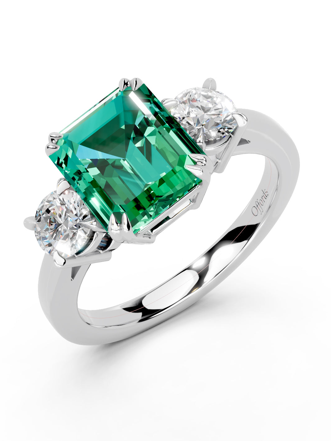 Platinum emerald & diamond three stone ring